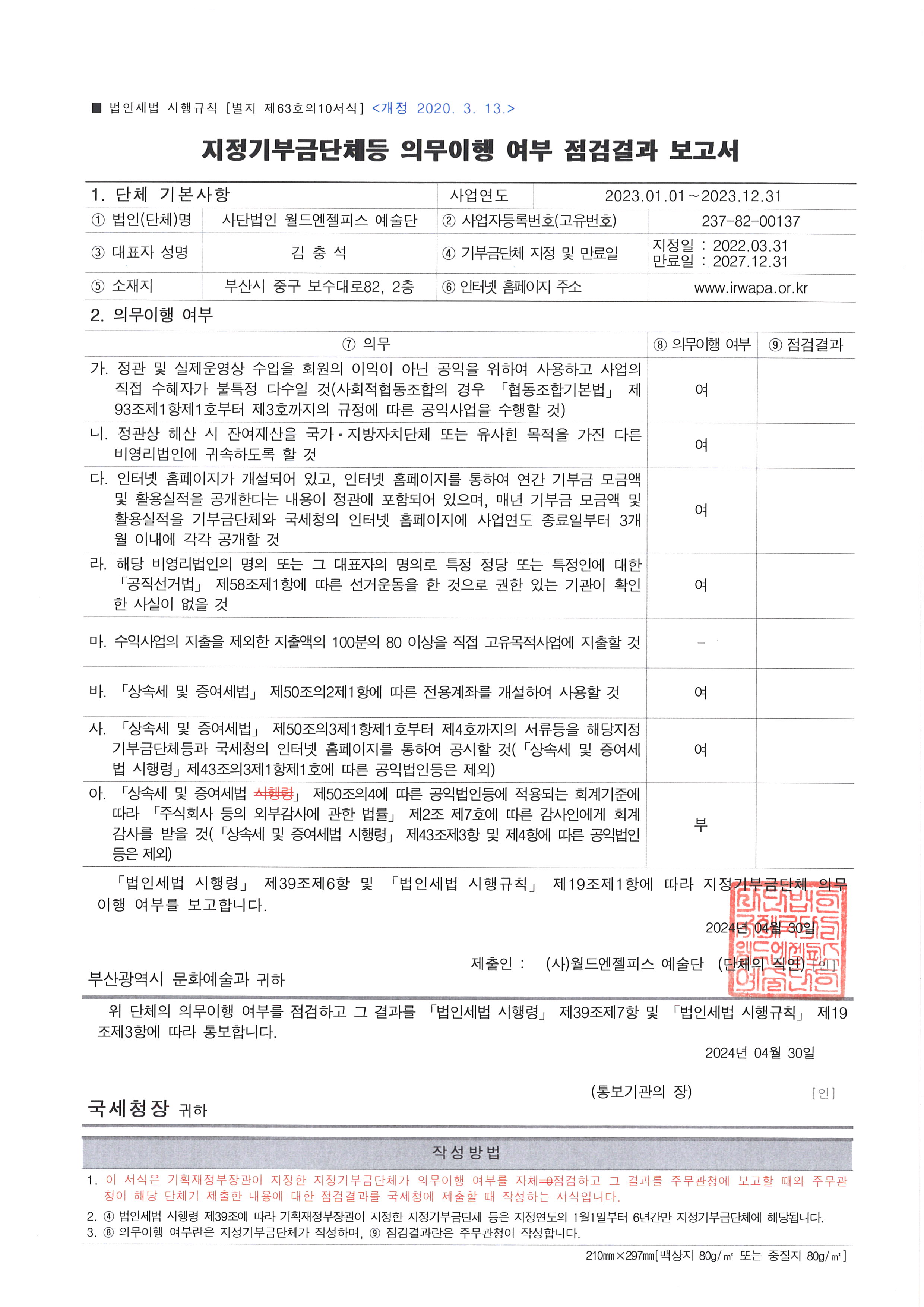 2023 지정기부금단체 의무이행 여부 점검결과 보고서