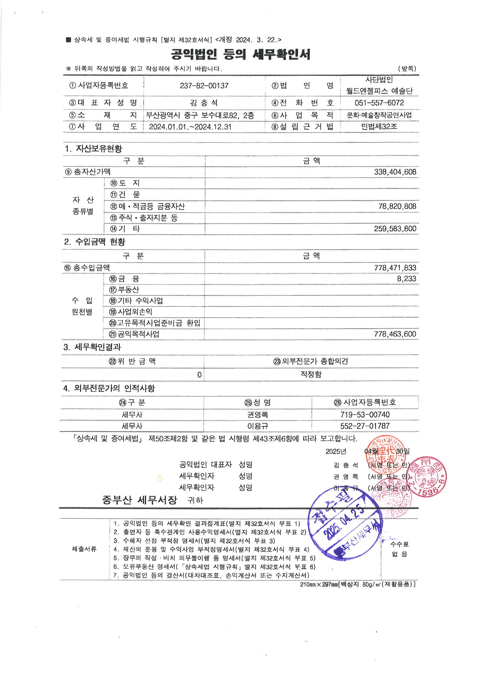 월드엔젤피스 예술단 제12기 최종 합격자 공고