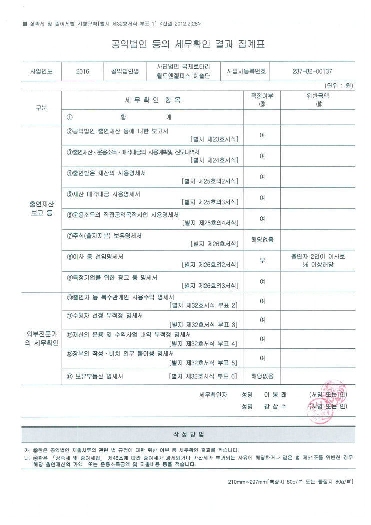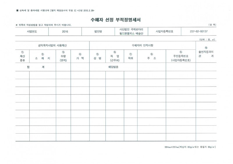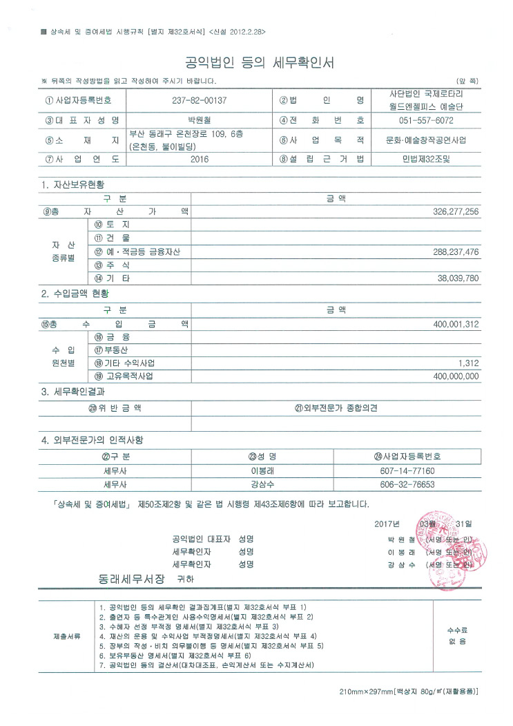 공익법인 세무확인서