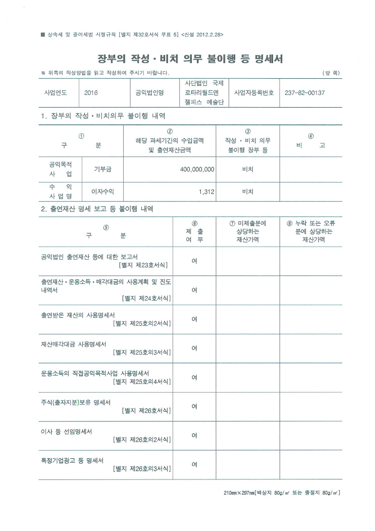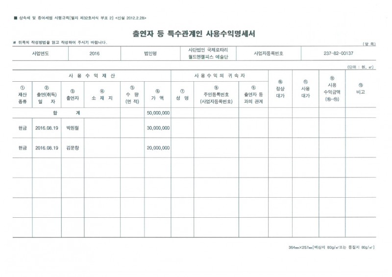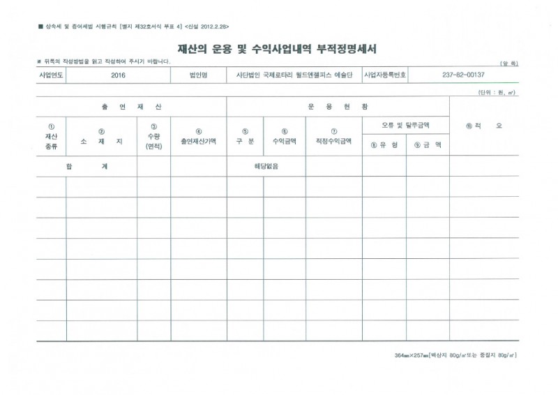 공익법인 출연재산 보고서