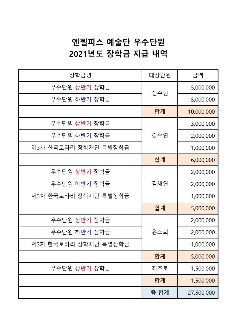2021년 제3차 한국로타리 장학재단 특별장학금 대상단원