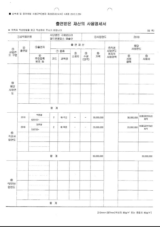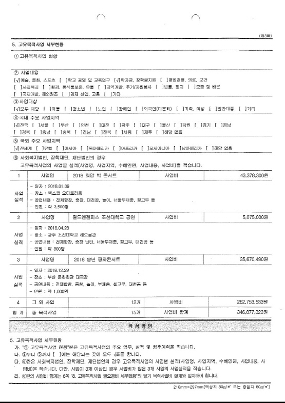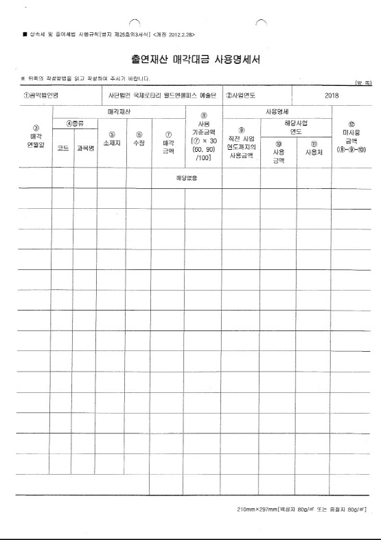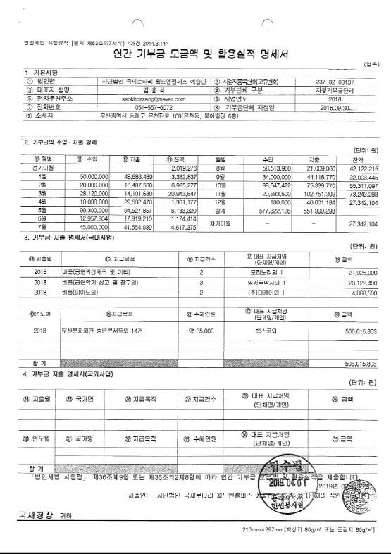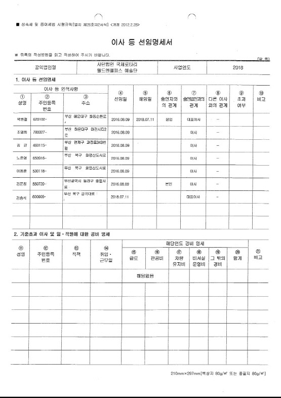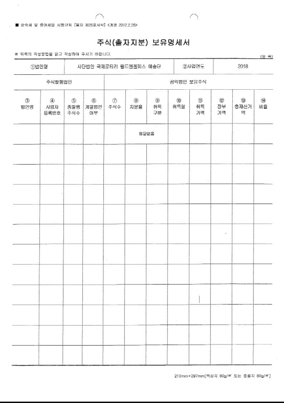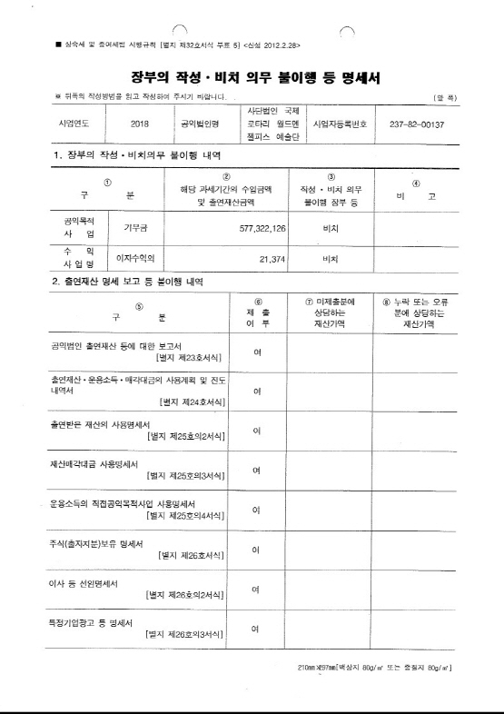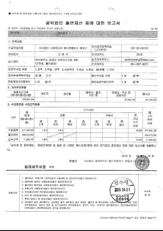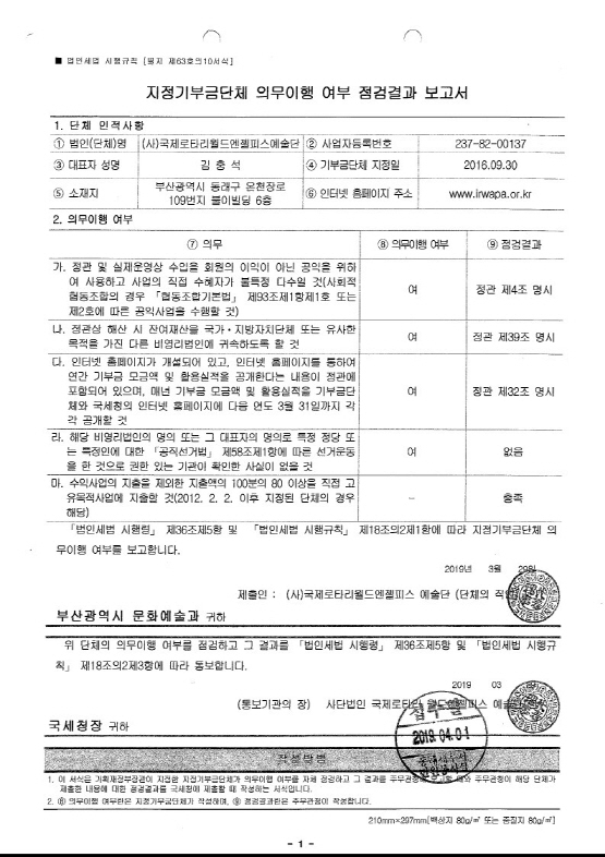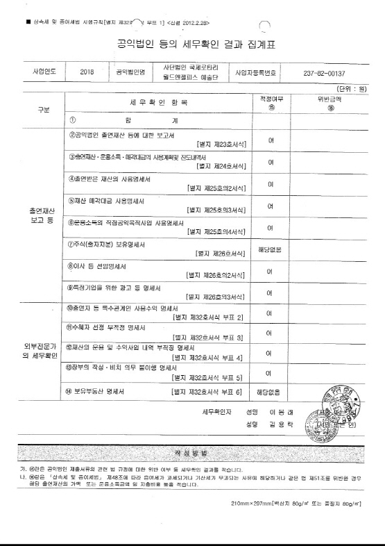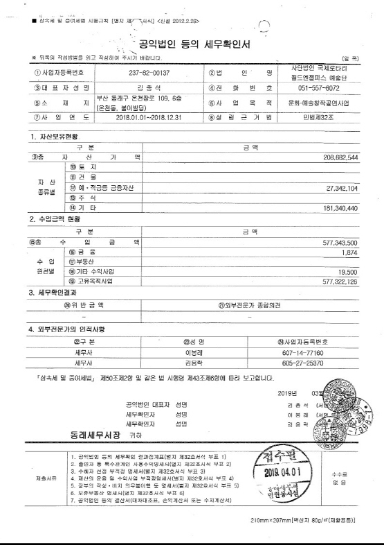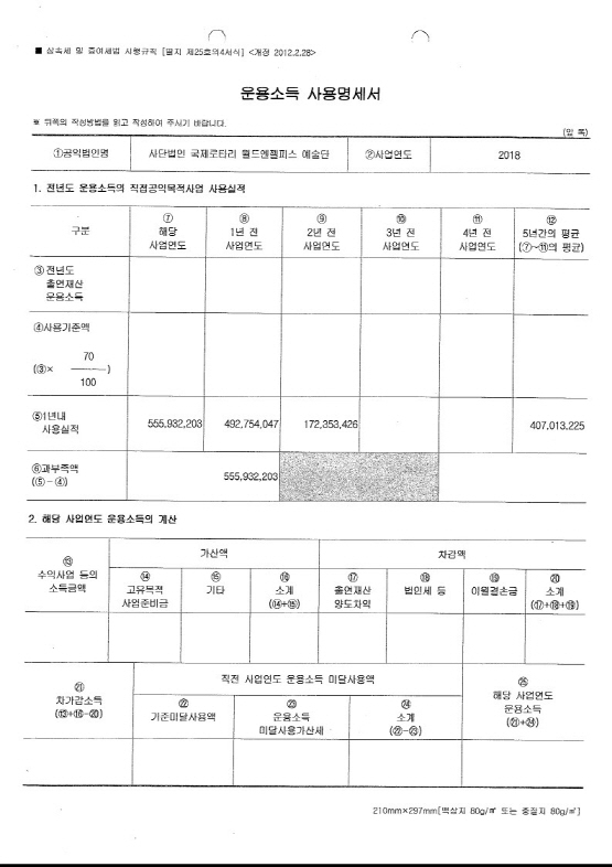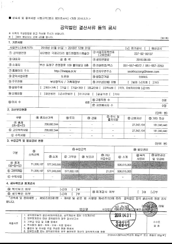 2018 엔젤피스 예술단 결산서류 등의 공시 등
