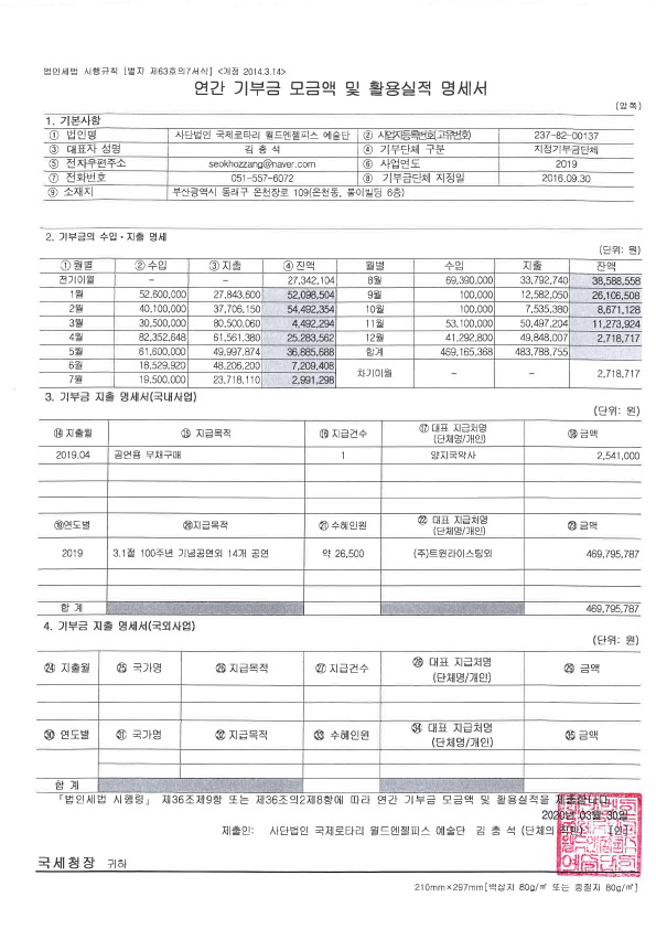 2019 연간 기부금 모금액 활용실적