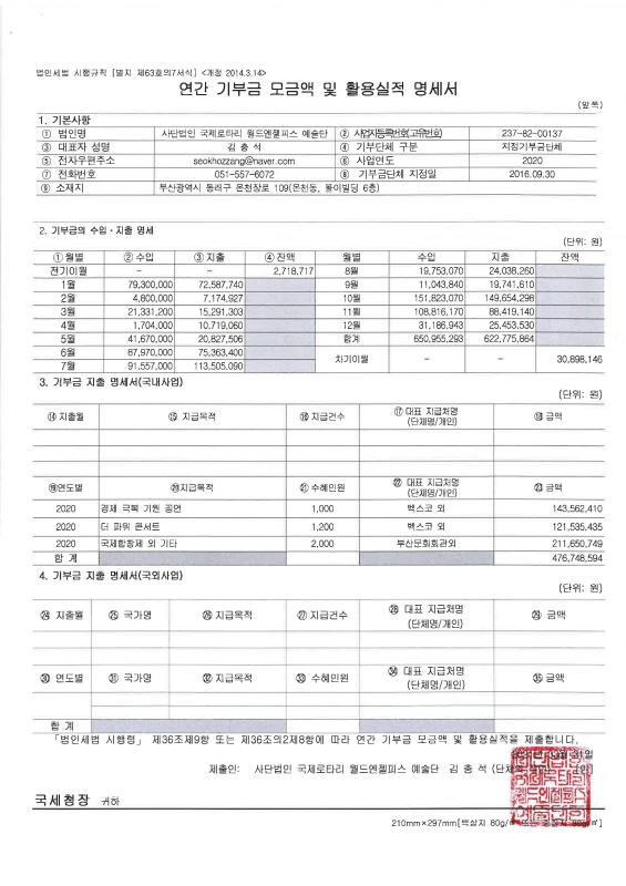 2020 연간 기부금 모금액 활용실적