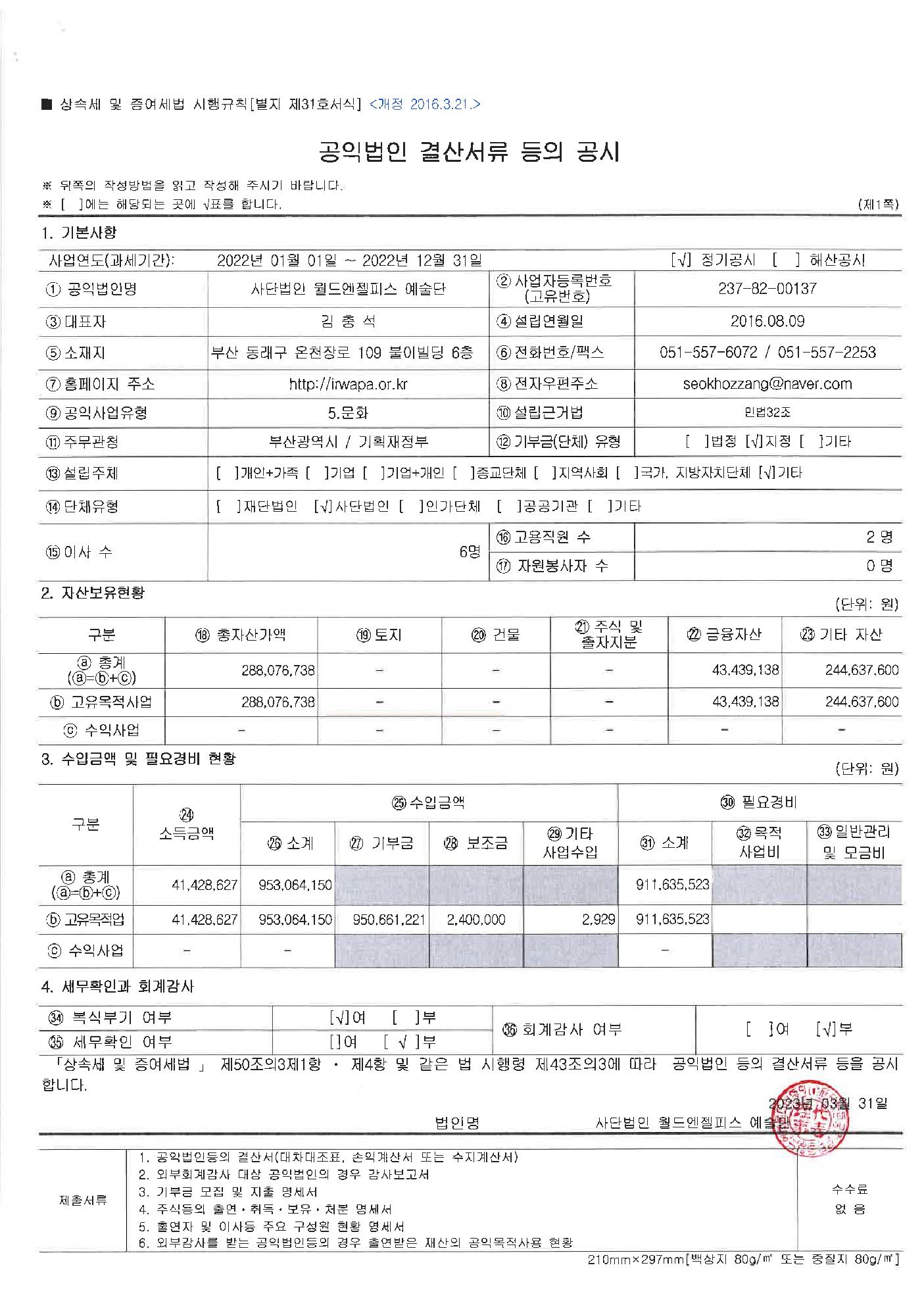 2022 공익법인 결산서류공시