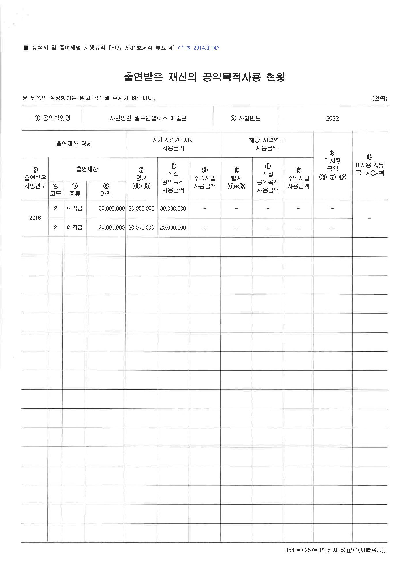 2022 공익법인 출연재산 보고서