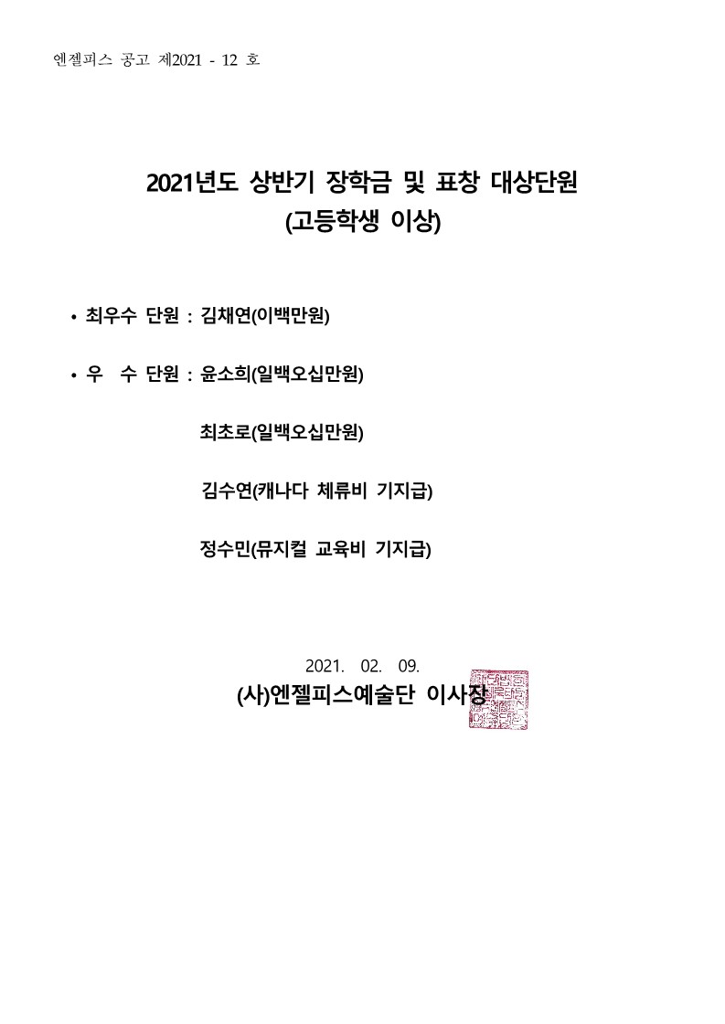 2020 엔젤피스 예술단 결산서류 등의 공시 등